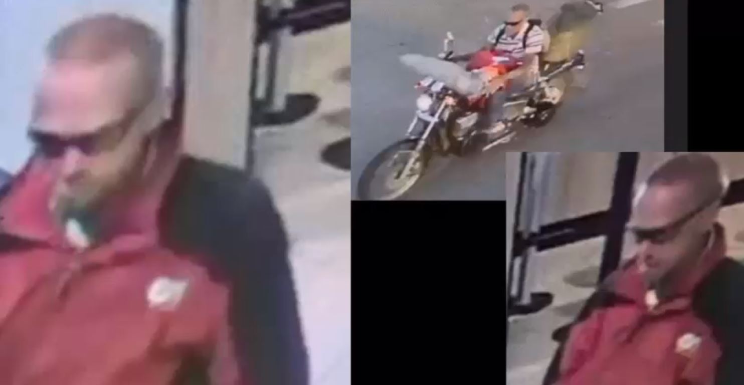 The suspect is a white male, possibly around 40-years old, and he drives a motorcycle.