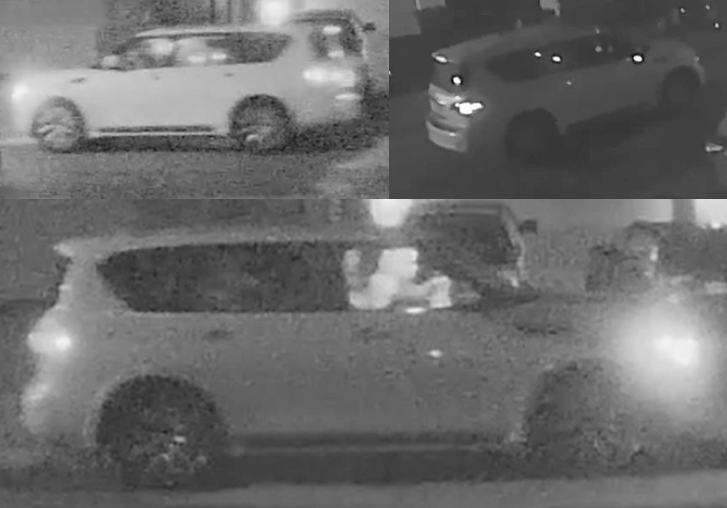 Security video shows at least four people on foot and one other driving their getaway vehicle---a white SUV.